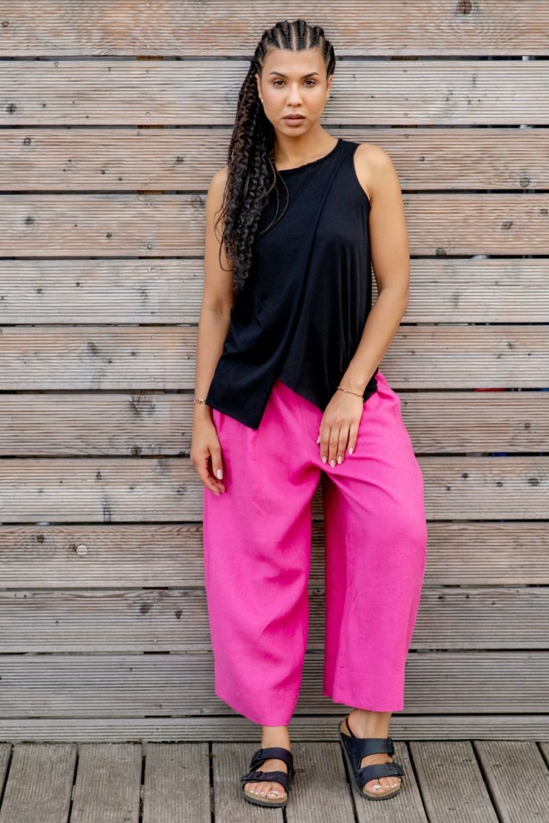 Kuloty TIMAN to uniwersalny element garderoby, który w zależności od stylizacji może przyjąć różne oblicza — od sportowego luzu po elegancką klasykę. Wykonane z naturalnej tkaniny lnianej, dają wiele możliwości stylizacyjnych, podkreślając swobodny i komfortowy charakter spodni.