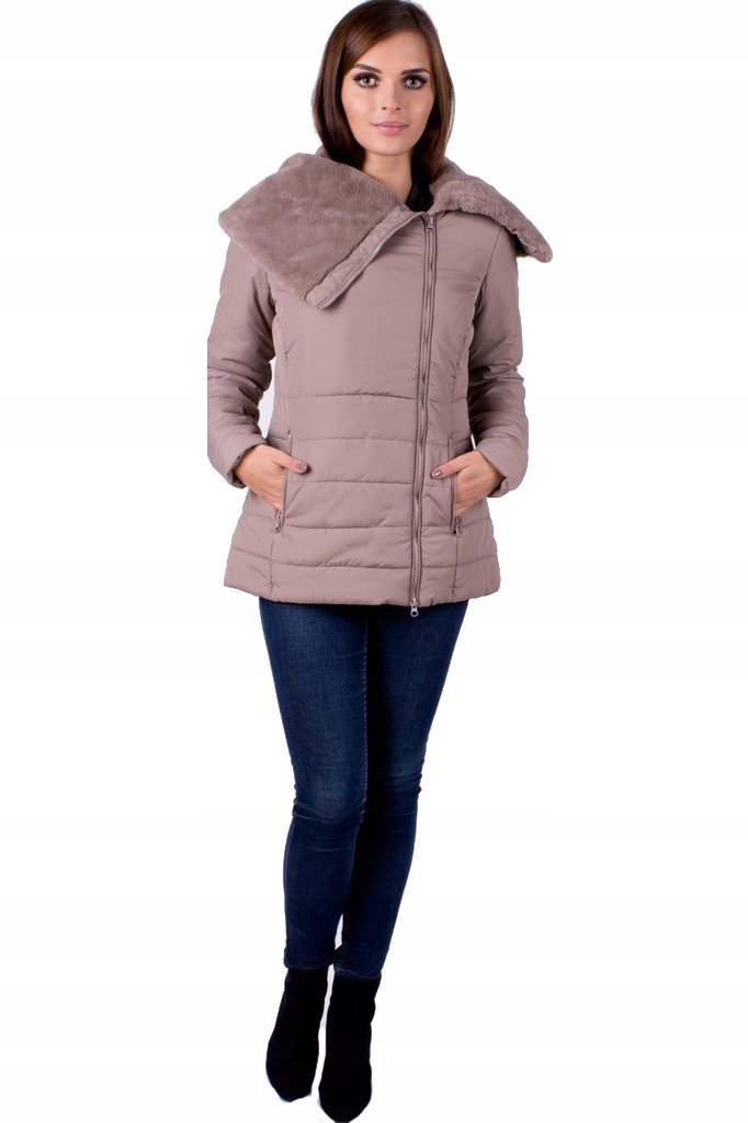 Charakterystycznym walorem kurtki jest dość duży wyeksponowany kołnierz z delikatnego futerka.