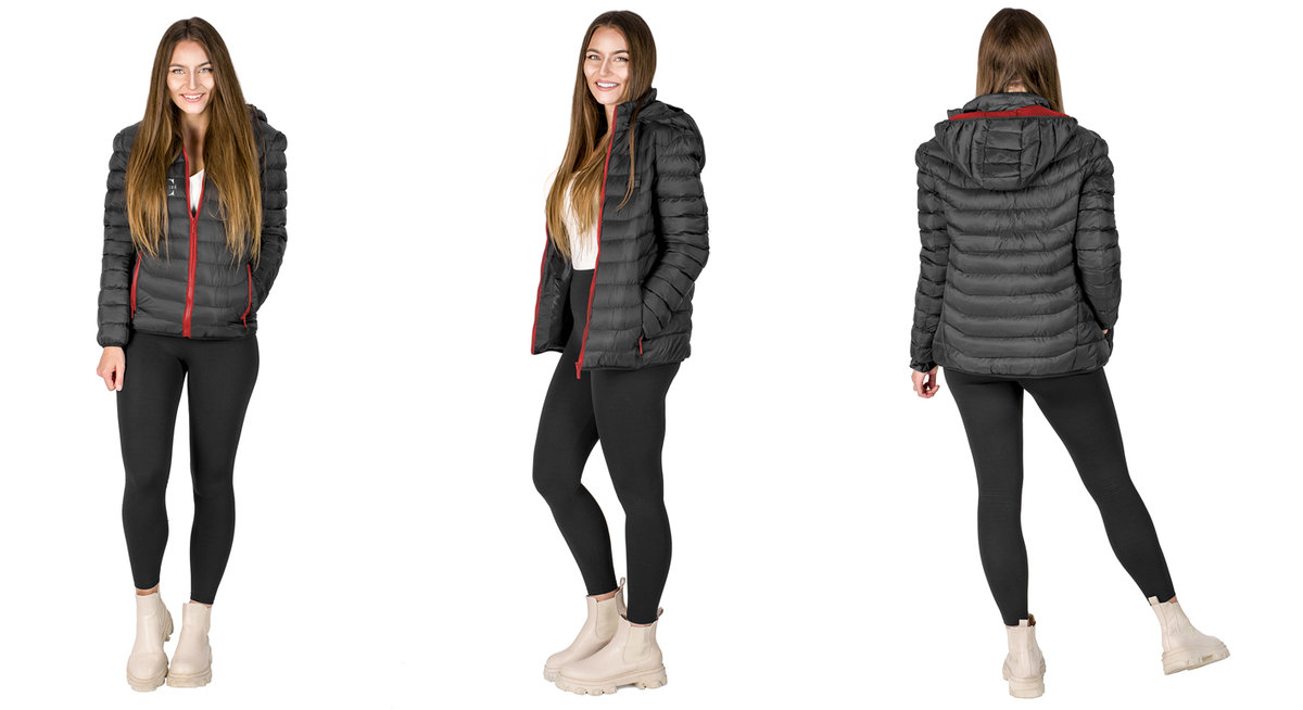 Optymalne rozmieszczenie wkładów grzejących sprawia, że kurtka zapewnia przyjemnie ogrzanie całego tułowia: