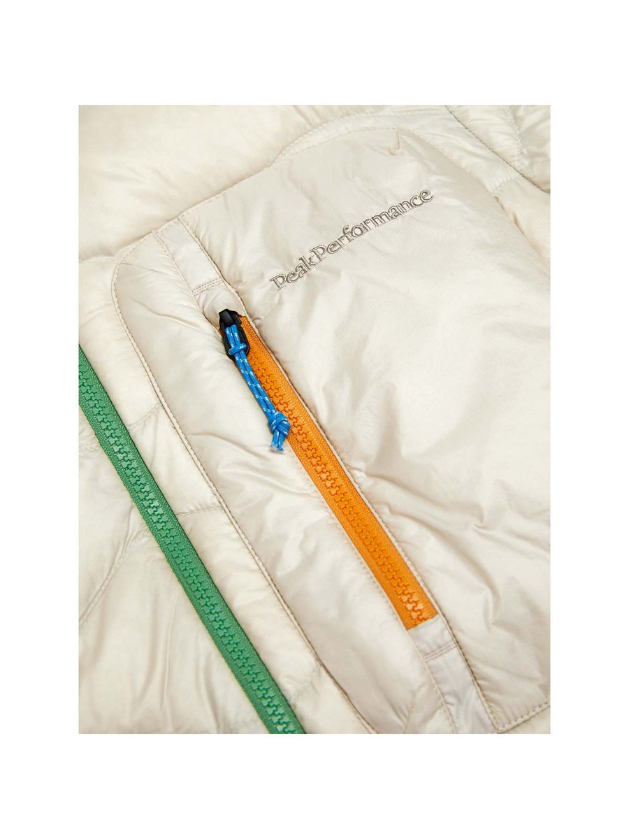 Kurtka puchowa Peak Performance M Helium Utility Down Hood, jest niezwykle lekka i pakowna. Wiatro- i wodoodporna powłoka w połączeniu z izolacją z puchu premium 90/10 sprawia, że jest to świetna kurtka do wszelkich aktywności na świeżym powietrzu. Można ją nosić jako warstwę zewnętrzną lub pod kurtką, aby uzyskać dodatkowe ciepło. Przy jej produkcji użyto tylko odpowiedzialnie pozyskiwanego puchu, którego pochodzenie można w pełni śledzić dzięki programowi Track My Down®. Wyróżnia ją dodatkowa kieszeń na piersi, zapinana na suwak w kontrastowym kolorze.
