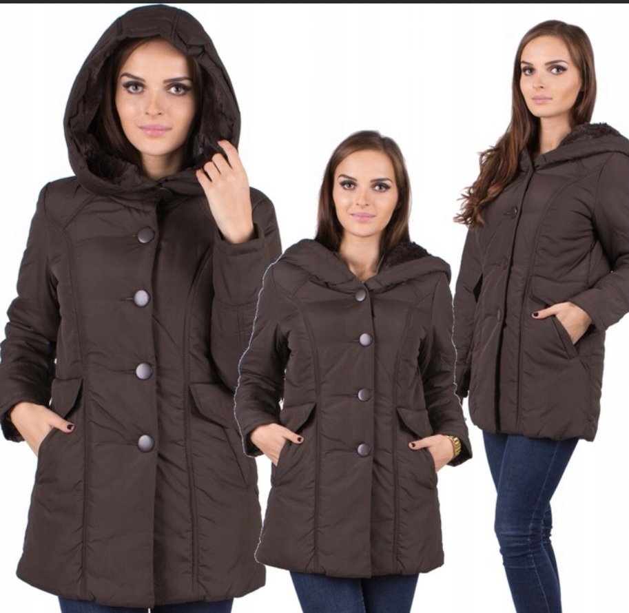 Elegancka i klasyczna kurtka Brazowa - kobieca,modna Wyszczuplajaca i wysmuklajaca Piekna i praktyczna Zapinanana na guziki,kapturek wykończony futerkiem Klasyczna i wygodna,kieszonki Ideallna ...