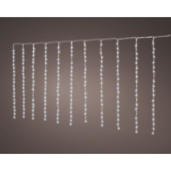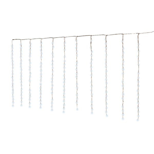 Kurtyna ledowa Długość: 400cm Długość spadów: 100cm Kolor kabla: transparentny Odległość między lampkami: 5cm Przeznaczona na zewnątrz Klasa IP: IP-44 Długość kabla zasilającego: 500 Rozmiar ...