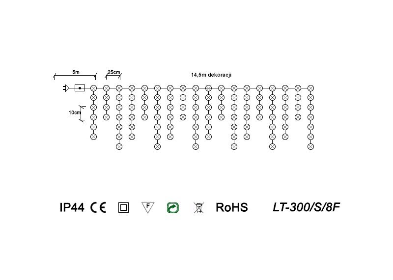 | Nazwa: | Kurtyna Sople LED 15 m 300 LED OLT-300/S/8F/P, barwa zimna biała |