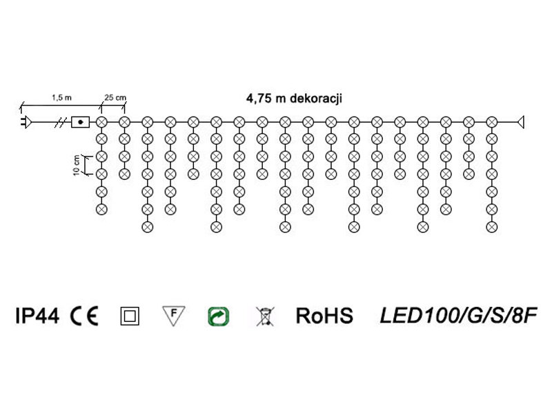 - długość / wymiary dekoracji świetlnej: 4,75 m