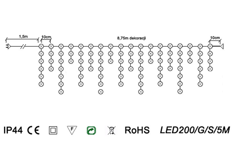 - Długość / Wymiary dekoracji świetlnej: 8,75m
