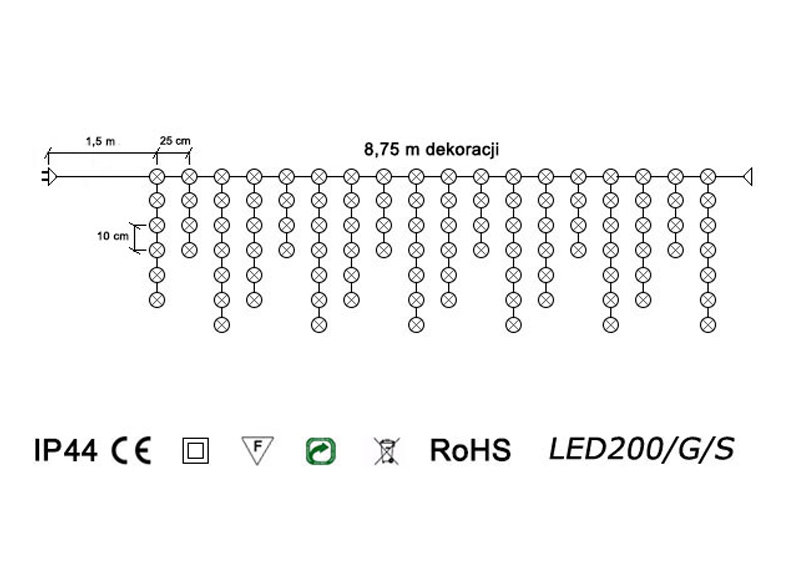 | Nazwa: | Kurtyna sople LED 8,75 m 200 LED OLED-200/G/S/X, barwa ciepła biała |