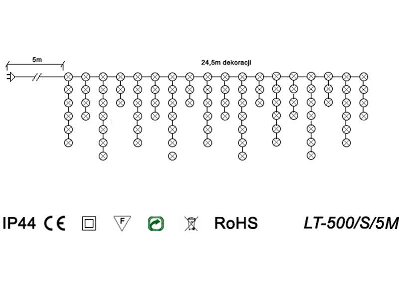 - Długość / Wymiary dekoracji świetlnej: 24,5m