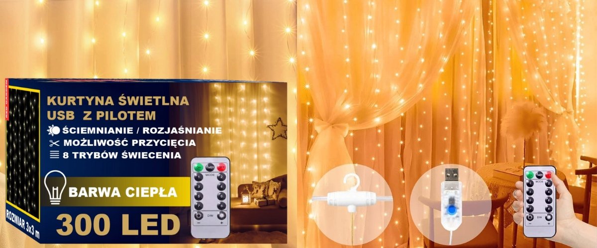 | Nazwa: | KURTYNA ŚWIETLNA LED 300 WISZĄCE LAMPKI NA USB 3x3M NA WEWNĄTRZ I ZEWNĄTRZ |
