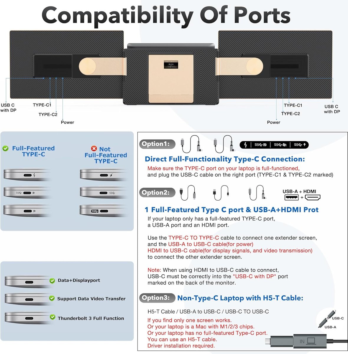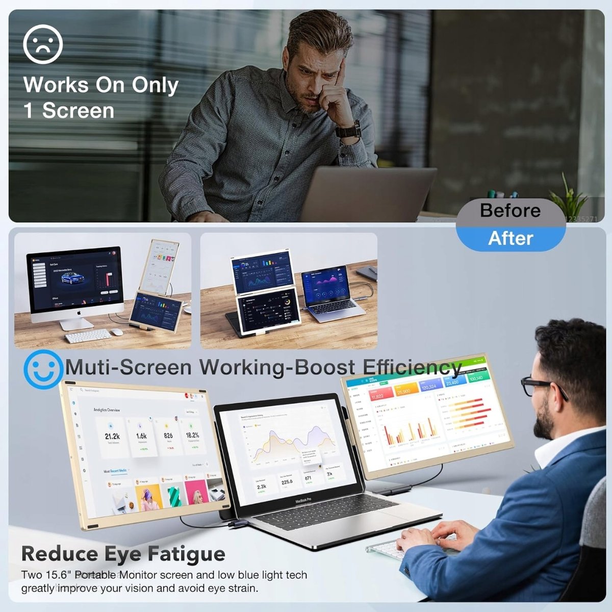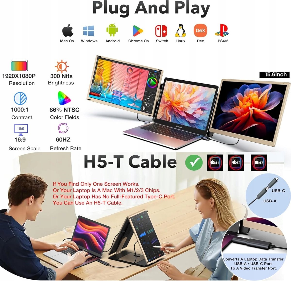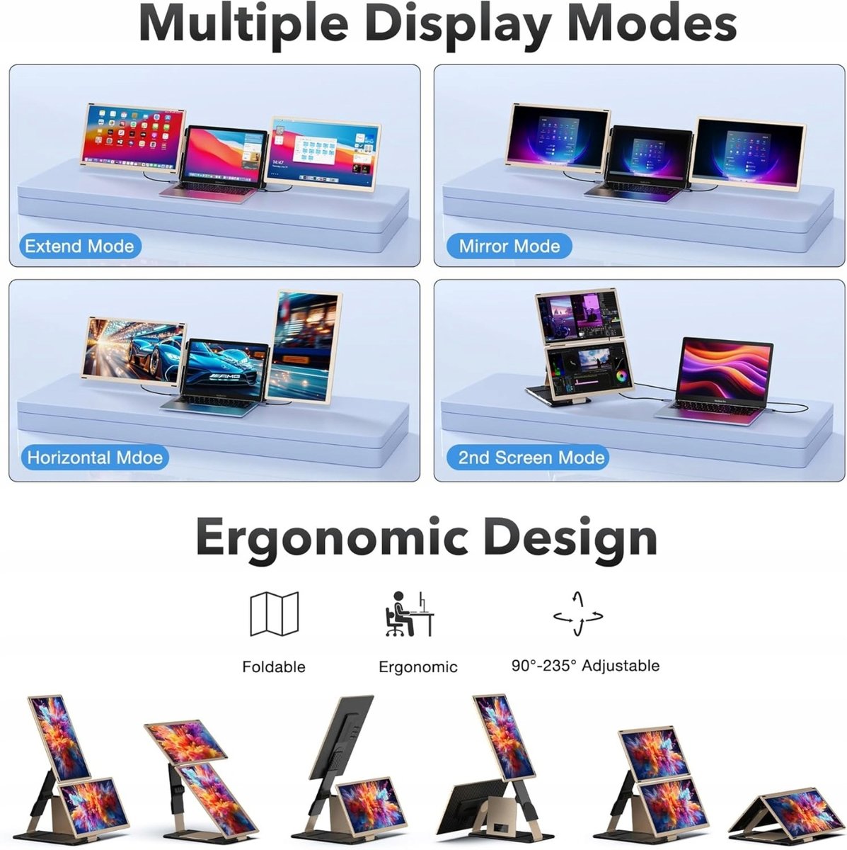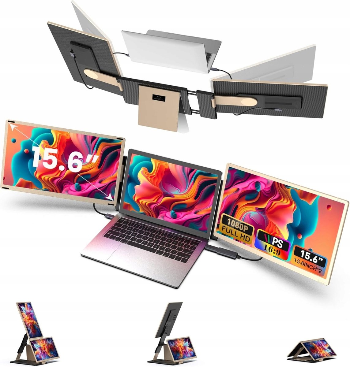 Informacje o tym produkcieZbuduj swoją własną stację roboczą z potrójnym przenośnym monitorem: przenośny monitor o przekątnej 15,6" do laptopa to wielofunkcyjny przenośny monitor z dwoma ekranami, ...