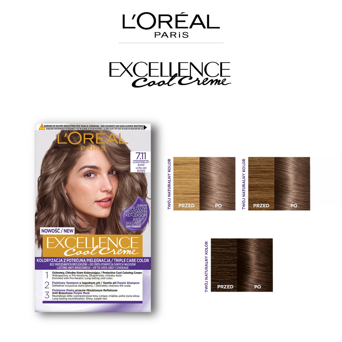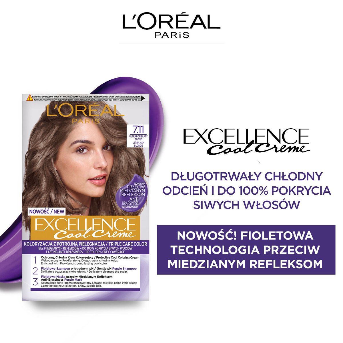 Właśnie zrecenzowałem L'Oreal Excellence Cool Creme Farba do włosów 7.11 Ultra Popielaty Blond