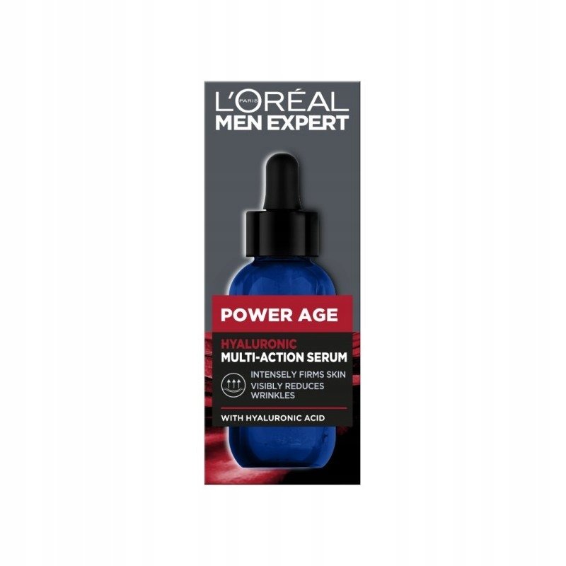 Pojemność 30ml Innowacja na rynku męskiej pielęgnacji przeciwzmarszczkowej. Zapewnij swojej skórze siłę do starzenia się w świetnej kondycji. Przedstawiamy pierwsze Wielozadaniowe serum z kwasem hialuronowym Power Age od L’Oréal Paris Men Expert, stworzone z myślą o mężczyznach borykających się z suchą skórą pozbawioną witalności, z widocznymi oznakami starzenia. Formuła serum została wzbogacona dwoma rodzajami kwasu hialuronowego dla najwyższej skuteczności: - Makrocząsteczkowy kwas hialuronowy - pozostaje na powierzchni skóry, aby natychmiast zapewnić efekt nawilżenia i zdrowego wyglądu skóry; - Mikrocząsteczkowy kwas hialuronowy - wnika głębiej, aby wspierać redukcję oznak starzenia. Rezultaty? Serum zapewnia potrójne działanie: 1. Widocznie redukuje zmarszczki i drobne linie; 2. Ujędrnia skórę i przywraca napięcie konturów twarzy; 3. Długotrwale nawilża dla uczucia świeżości i poprawy tekstury skóry. Szybko się wchłania, nie pozostawiając tłustej ani lepkiej warstwy na skórze dla natychmiastowego komfortu. Testowane pod kontrolą dermatologiczną. Serum zamknięte jest w ciemnej butelce z pipetą. Zostało wzbogacone świeżą nutą zapachową z akordem drzewnym, która przywodzi na myśl siłę i elegancjęL'oreal Men Przeciwzmarszczkowe serum do twarzy