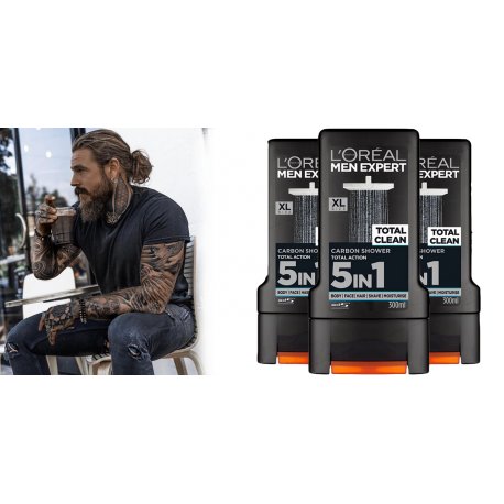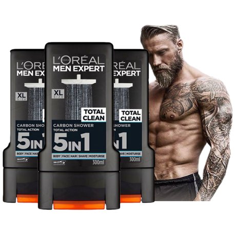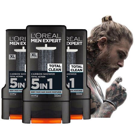LOREAL MEN długo pachnące żele pod prysznic męskie Ciało Włosy Twarz ZESTAW XL 3*300ml Zestaw zawiera: Loreal Men Pure Carbon żel pod prysznic czarny 300ml - 3 sztuka Żele pod prysznic dla mężczyzn