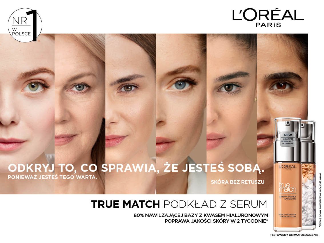 ² Subbrand L’Oréal True Match osiągnął najwyższą sprzedaż wartościową w kategorii Color Cosmetics Face w segmencie podkładów do twarzy w roku 2021 na rynku Cała Polska z Dyskontami (Drugs)³ Na podstawie danych NielsenIQ RMS w kategorii „Podkład”, zebranych w okresie 12 miesięcy kończącym się w lutym 2022 w 17 krajach⁴, całkowity rynek detaliczny (prawa autorskie NielsenIQ)⁴ Dotyczy następujących krajów: Austria, Belgia, Czechy, Dania, Francja, Hiszpania, Holandia, Niemcy, Norwegia, Polska, Rosja, Szwajcaria, Szwecja, Turcja, Węgry, Wielka Brytania, Włochy.