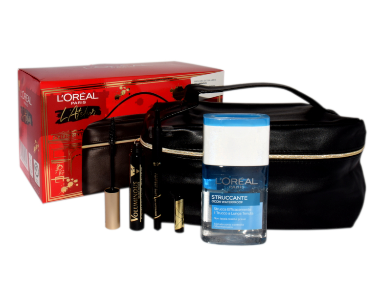 L'oreal zestaw zawiera: Mascara Voluminous Extra Black Perfect Slim Superliner Eye Makeup Remover 125 ml kosmetyczka