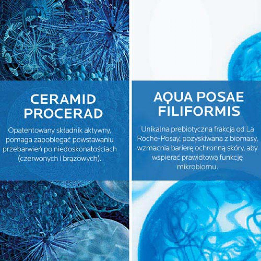 Aqua Posae Filiformis to unikalna prebiotyczna frakcja od La Roche-Posay, pozyskiwana z biomasy, znana jest z właściwości wzmacniających barierę ochronną skóry, aby wspierać prawidłową funkcję mikrobiomu. Zawarta w kojącej, nawilżającej i regenerującej formule z Niacynamidem, Panthenolem, Proceradem, Skwalanem oraz wyciągiem z ziaren Arnoty właściwej, o fizjologicznym pH.