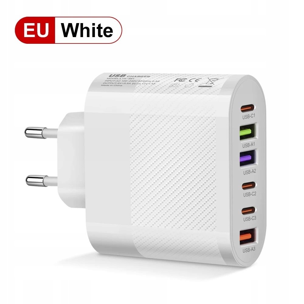| Nazwa: | Ładowarka 65W 3xUSB Typu C i 3xUSB Typu A QC3.0 BIAŁA |