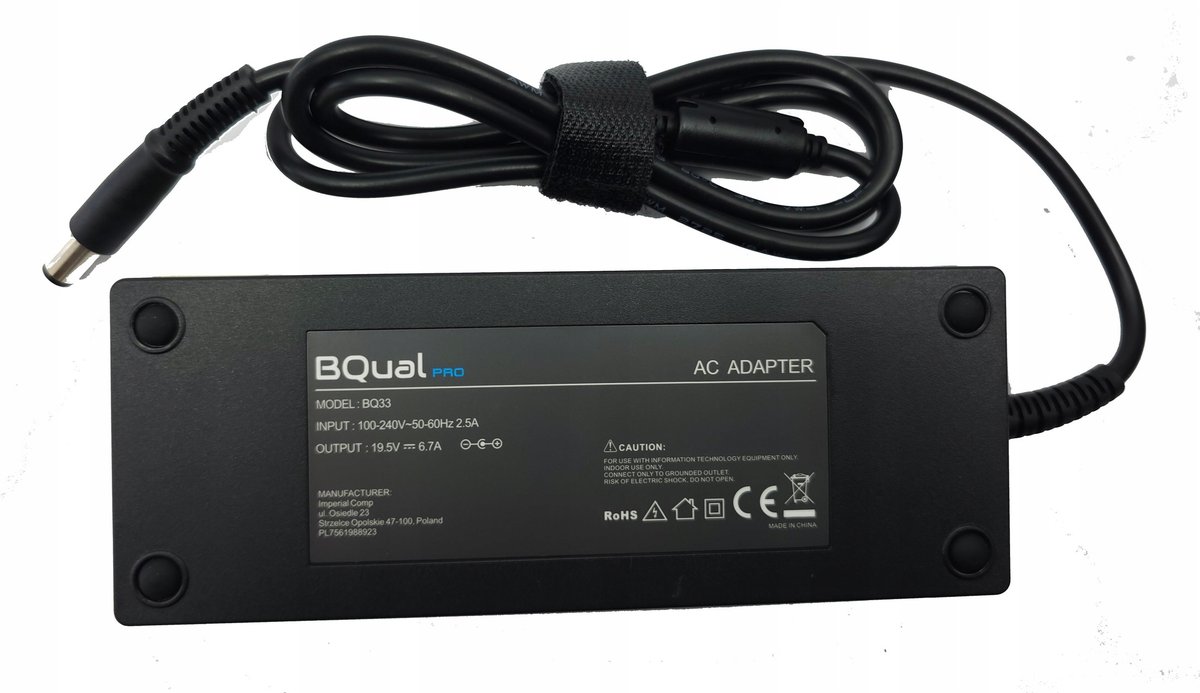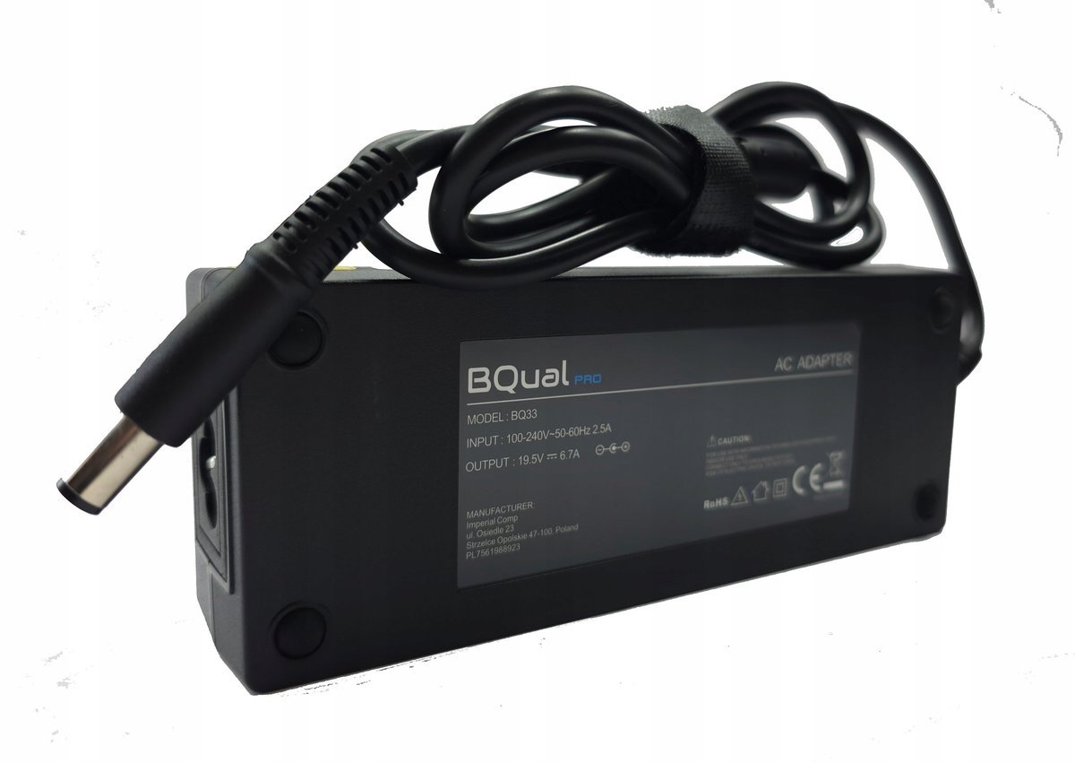 Zasilacz BQUAL PRO dedykowany jako zamiennik zasilaczy Dell 19.5V 6.7A 130W, (wtyk: okrągły 7.4-5.0mm). Idealnie dopasowana ładowarka sprawnie naładuje Twoje urządzenie w domu, w biurze i w podróży