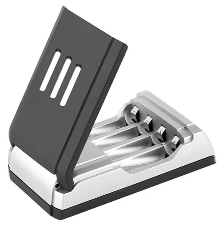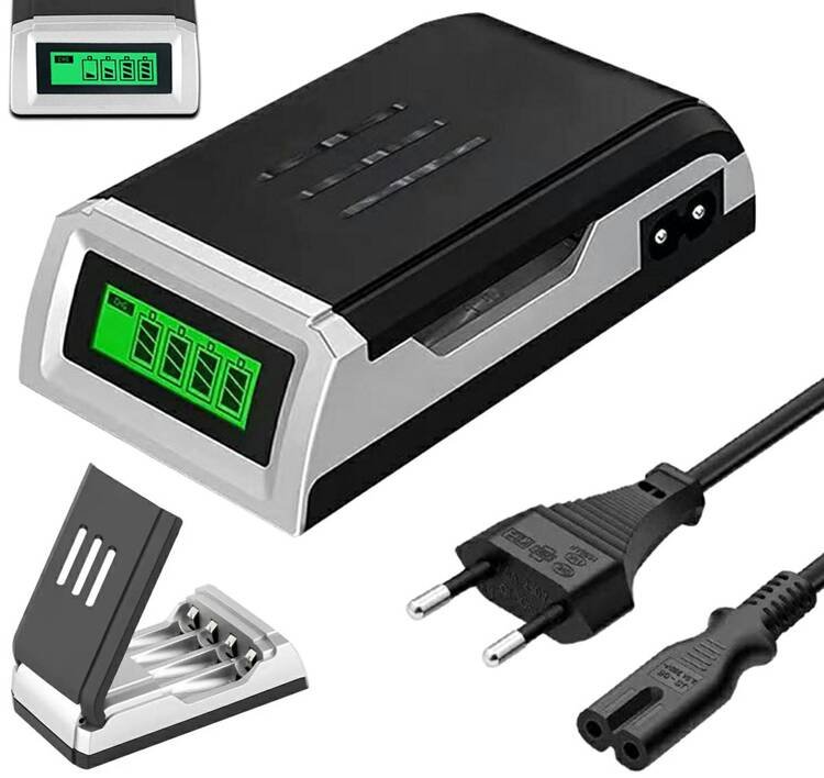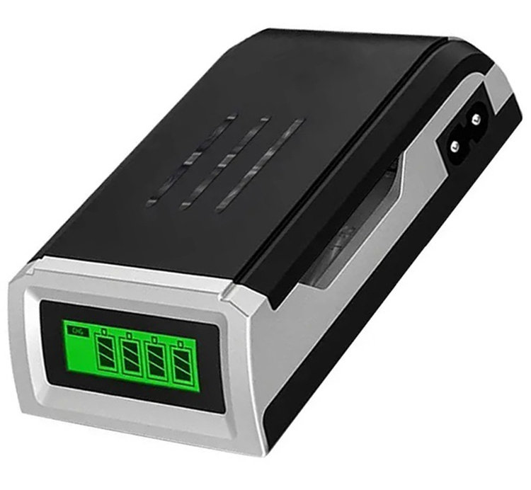 Kompaktowa ładowarka do baterii i akumulatorków typu AA i AAA. Posiada możliwość ładowania czterech baterii tego samego typu jednocześnie. Czytelny wyświetlacz LCD wskazuje poziom naładowania akumulatora oraz samo trwanie ładowania lub ewentualny błąd. Urządzenie zasilane jest z sieci elektrycznej 230V za pomocą dołączonego przewodu. Klapka w górnej części urządzenia osłania ogniwa podczas ładowania.