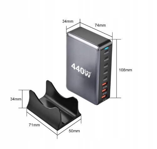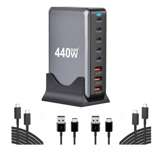 | Nazwa: | Ładowarka Gan 440W 8W1 Usb-C Pd Qc 3.0 Z Podstawką |