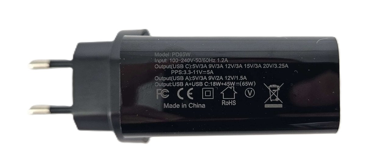 - Zawartość opakowania: Ładowarka INfloo PD65W czarna, adapter gniazdka US->EU