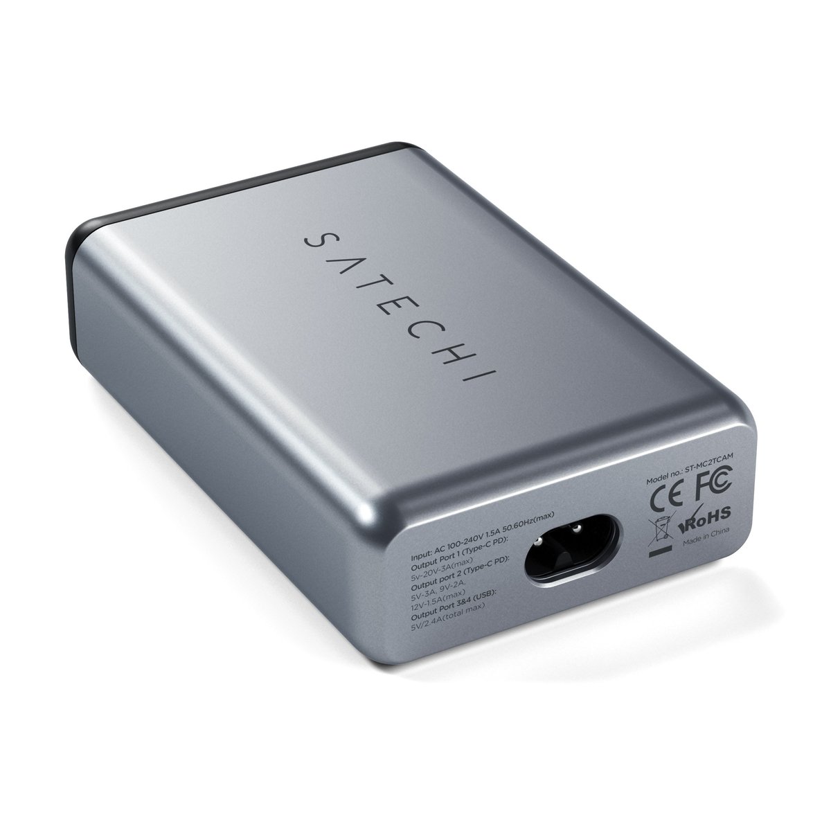 Ładowarka podróżna Satechi 75 W wyposażona została w Dual Type-C PD z dwoma portami USB-C PD (maks. 60 W, 18 W) zaprojektowanymi do ładowania przez port typu C laptopów, tabletów lub smartfonów ze złączem USB-C.