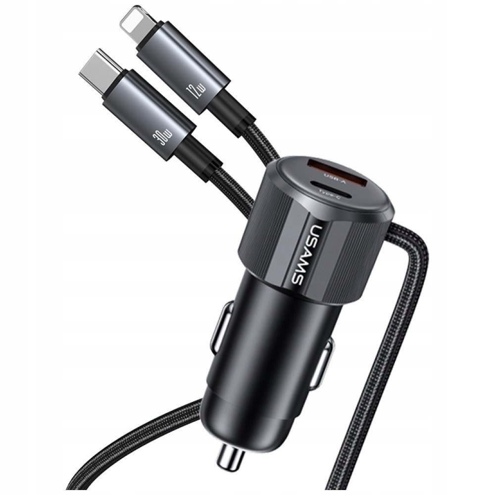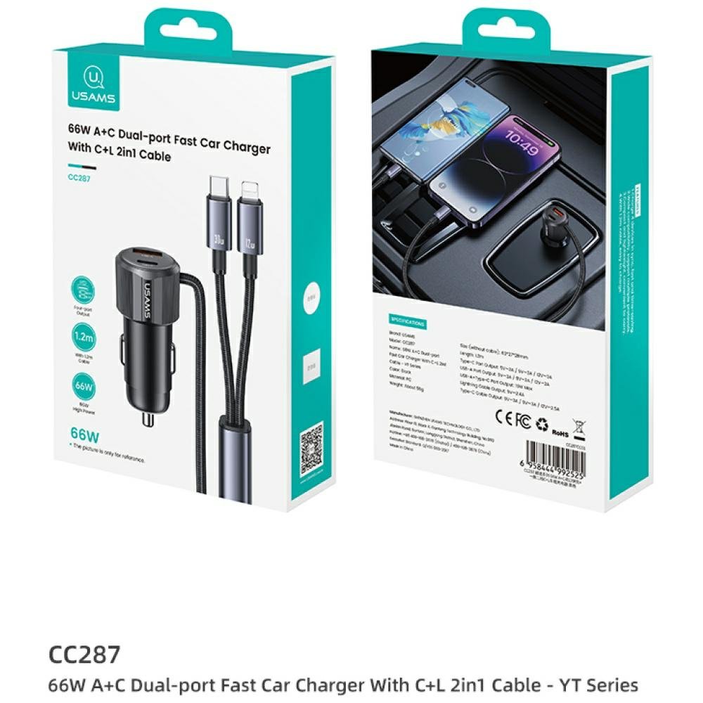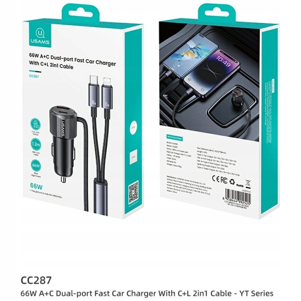 Ładowarka samochodowa USAMS YT Series CC287 66W 1xUSB-A 1xUSB-C + kabel 2w1 USB-C/Lightning tarnish