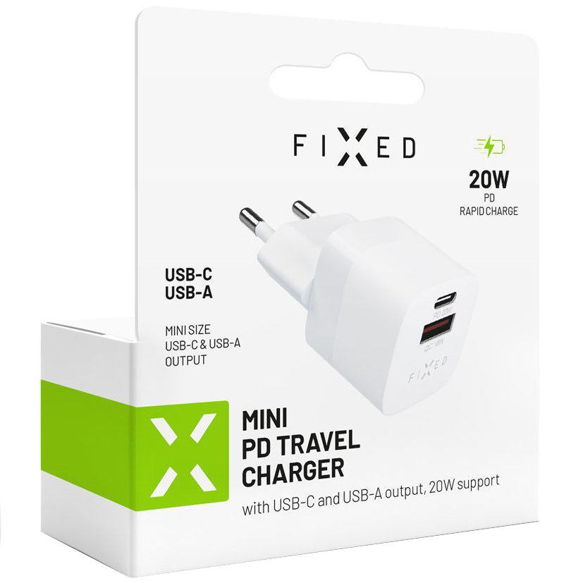 Ładowarka sieciowa Fixed Mini PD Travel Charger, USB-A, USB-C, 20 W