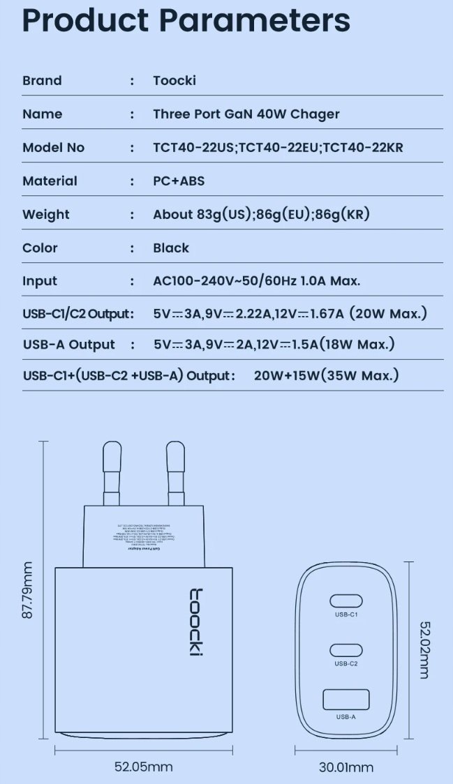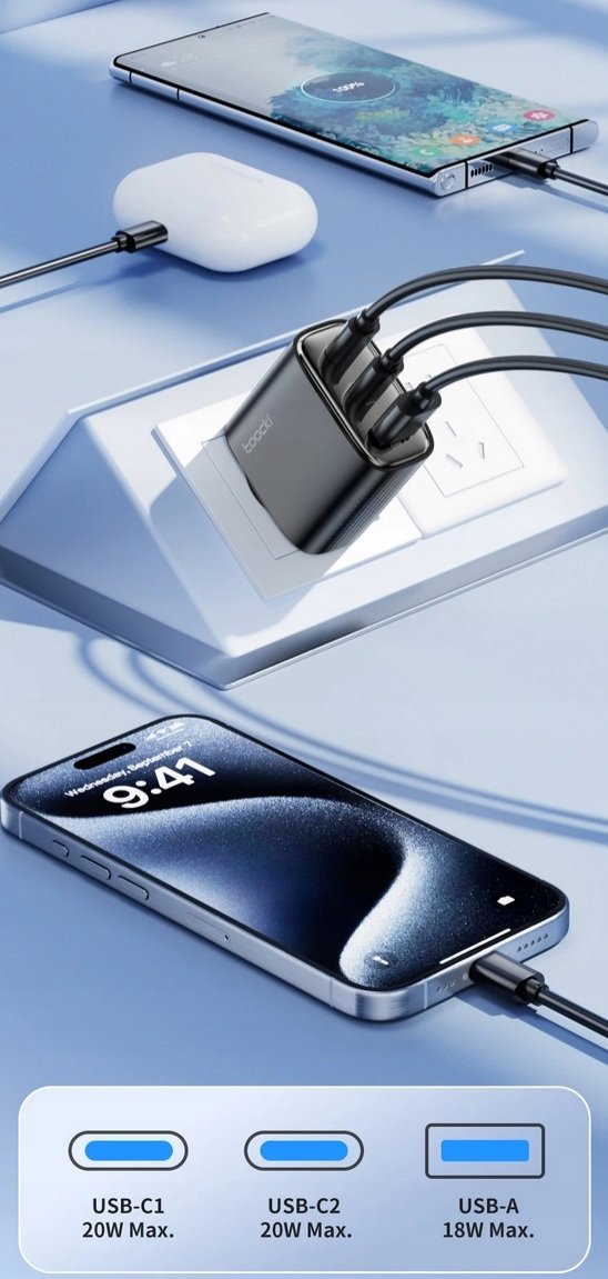 ŁADOWARKA SIECIOWA TOOCKI 40W 2 x USB-C + 1 x USB-A