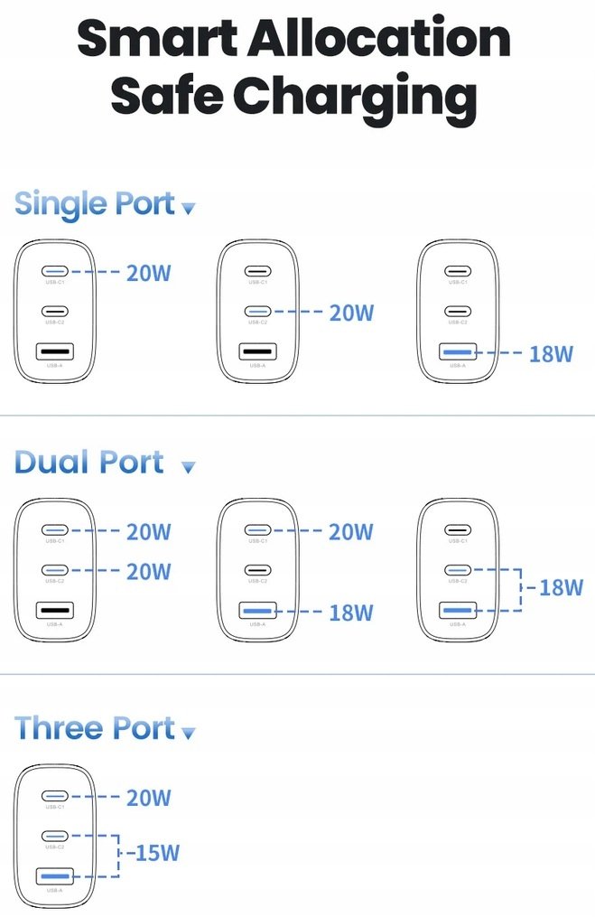- Szybkiemu ładowaniu USB PD i QC4.0 PD