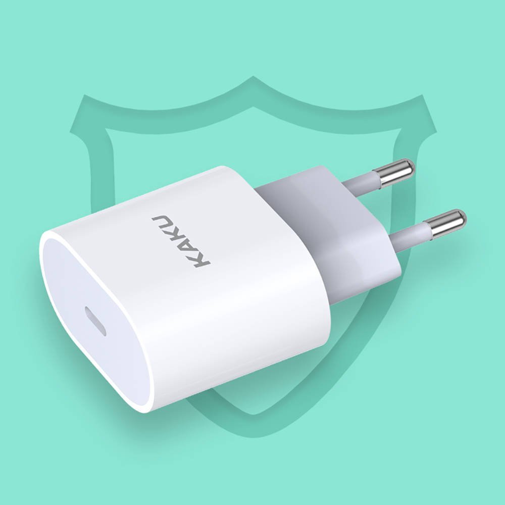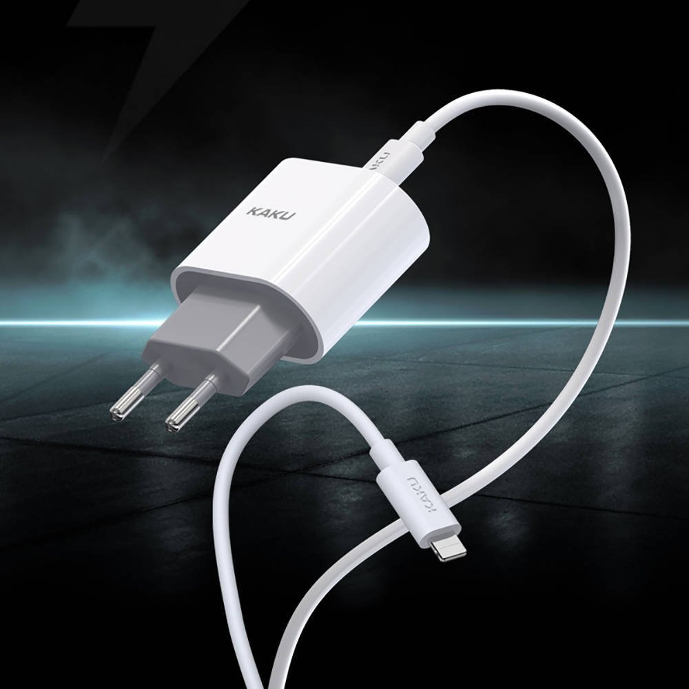 KAKU KSC-547 USB-C PD 20W (wtyczka EU) + Kabel USB-C na Lightning 1mSzybkie ładowanie PD20W, uniwersalna ładowarka dla Apple / Android, inteligentny chip, szybkie ładowanie nie uszkodzi urządzeniaMoc