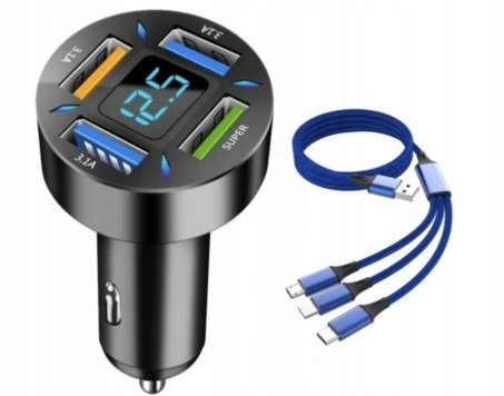 ✅ Ładowarka samochodowa 3x USB-A + 1x USB-C to idealne rozwiązanie dla osób, które potrzebują jednocześnie naładować kilka urządzeń podczas jazdy.
