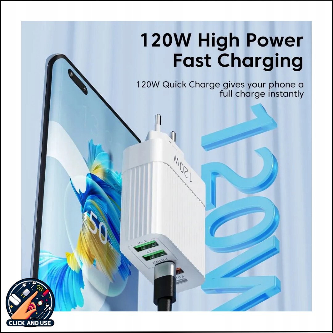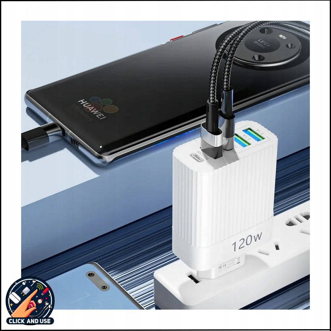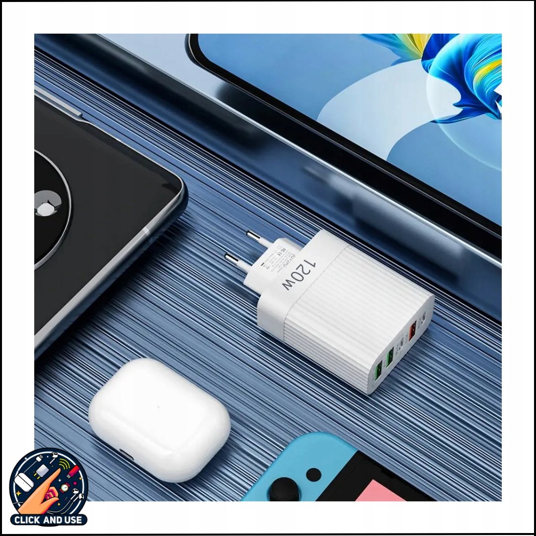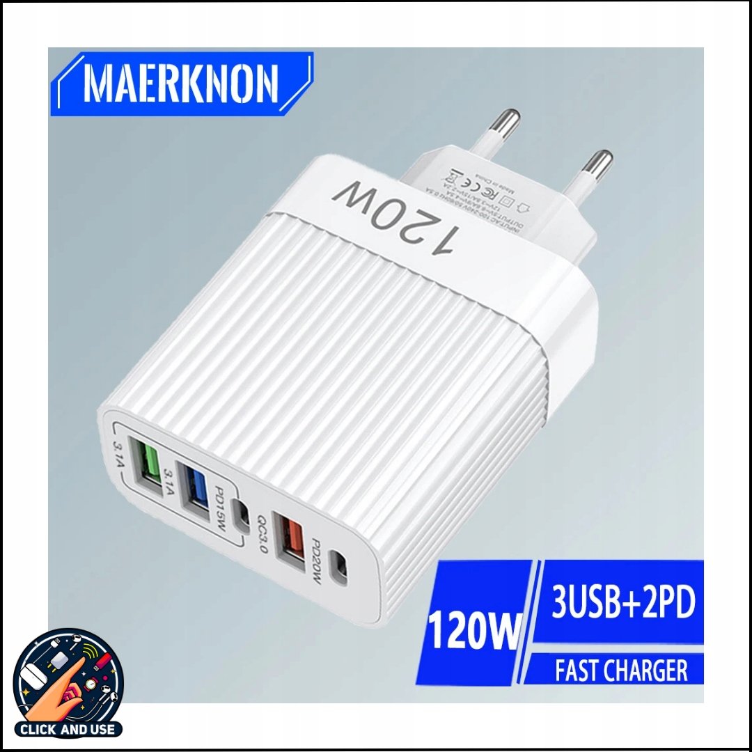 Ładowarka USB 120W z 5 Portami – PD Typ C & USB A