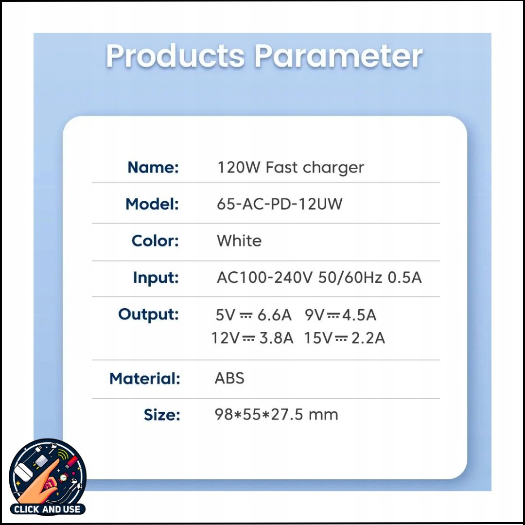 Ładowarka USB o mocy 120 W to idealne rozwiązanie dla osób, które potrzebują szybko i bezpiecznie naładować wiele urządzeń jednocześnie. Wyposażona w 2 porty PD USB-C oraz 3 porty USB-A (w tym Quick Charge 3.0), zapewnia szybkie i efektywne ładowanie. Dzięki kompaktowym wymiarom i lekkiej konstrukcji doskonale sprawdzi się zarówno w domu, biurze, jak i podczas podróży.