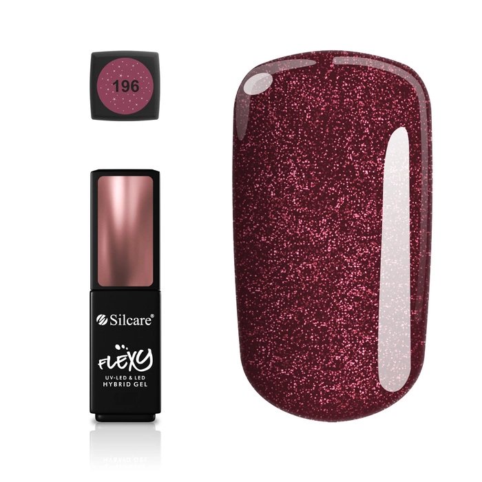 Flexy 196 to brokatowy lakier hybrydowy w eleganckim odcieniu bordo, który doda Twoim stylizacjom klasy i wyjątkowego blasku.