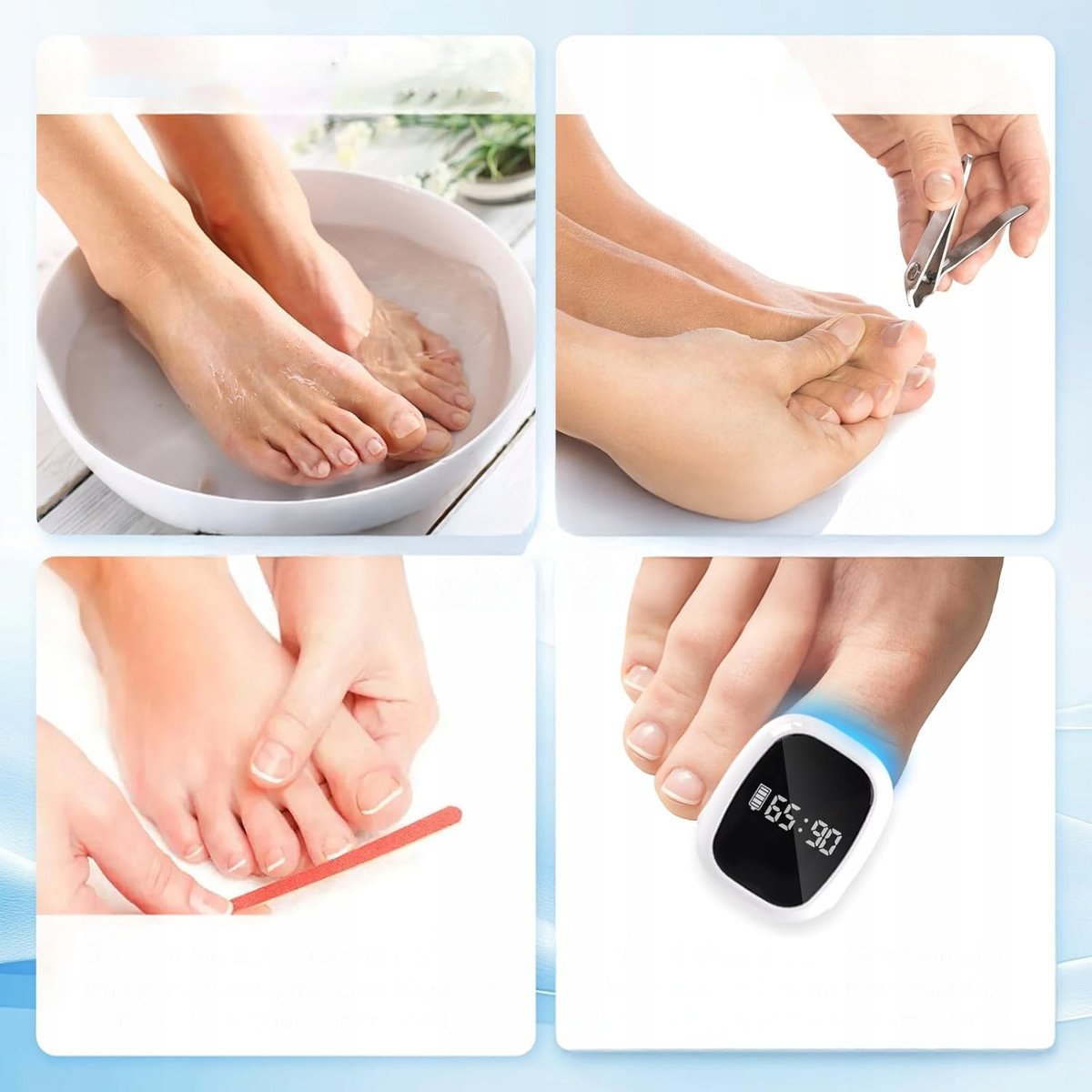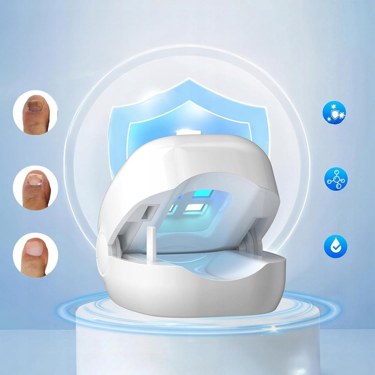Żadnych skomplikowanych czynności – terapia jest bezbolesna i komfortowa. Zapomnij o czasochłonnych kremach i codziennej pielęgnacji⏳. Wystarczy nałożyć urządzenie, a automatycznie rozpocznie leczenie, przywracając zdrowy wygląd paznokci🌟!