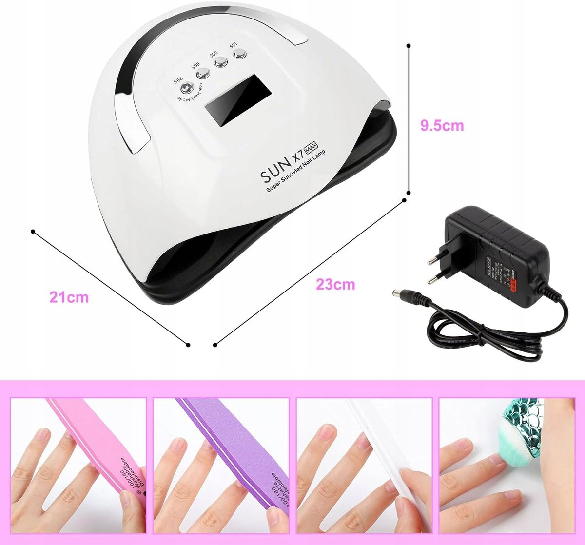 Lampa X7 Max marki NETBUY to urządzenie unikalne, które utwardza żele UV, lakiery hybrydowe oraz inne produkty światłoutwardzalne, co sprawia, że może znaleźć zastosowanie zarówno w salonach kosmetycznych, jak i w domu. Dodatkowo, lampa jest łatwa w czyszczeniu, co znacząco ułatwi jej utrzymanie w nienagannym stanie.