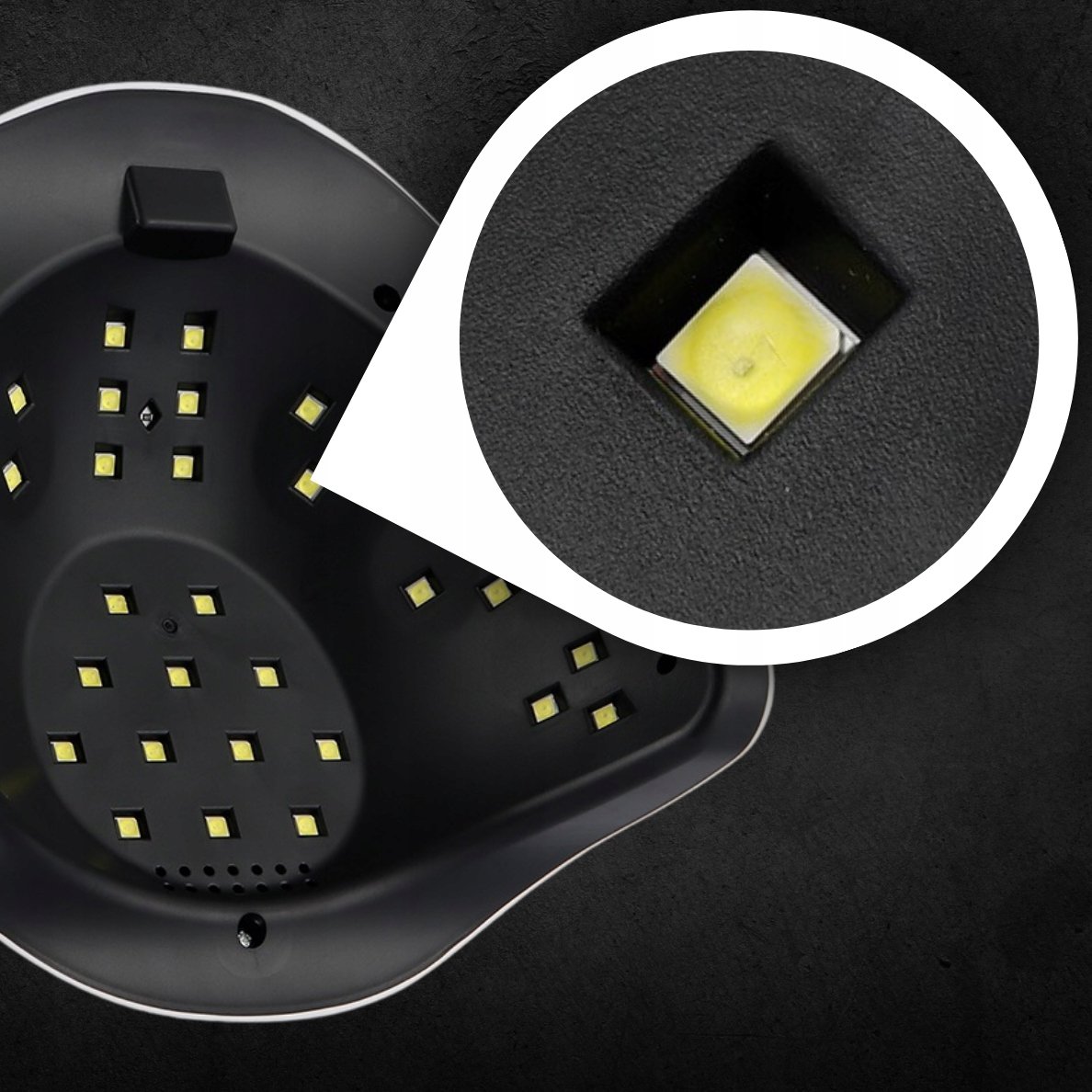 - Szybkość i wydajność – moc 220W i 57 diod LED zapewniają równomierne i głębokie utwardzanie.