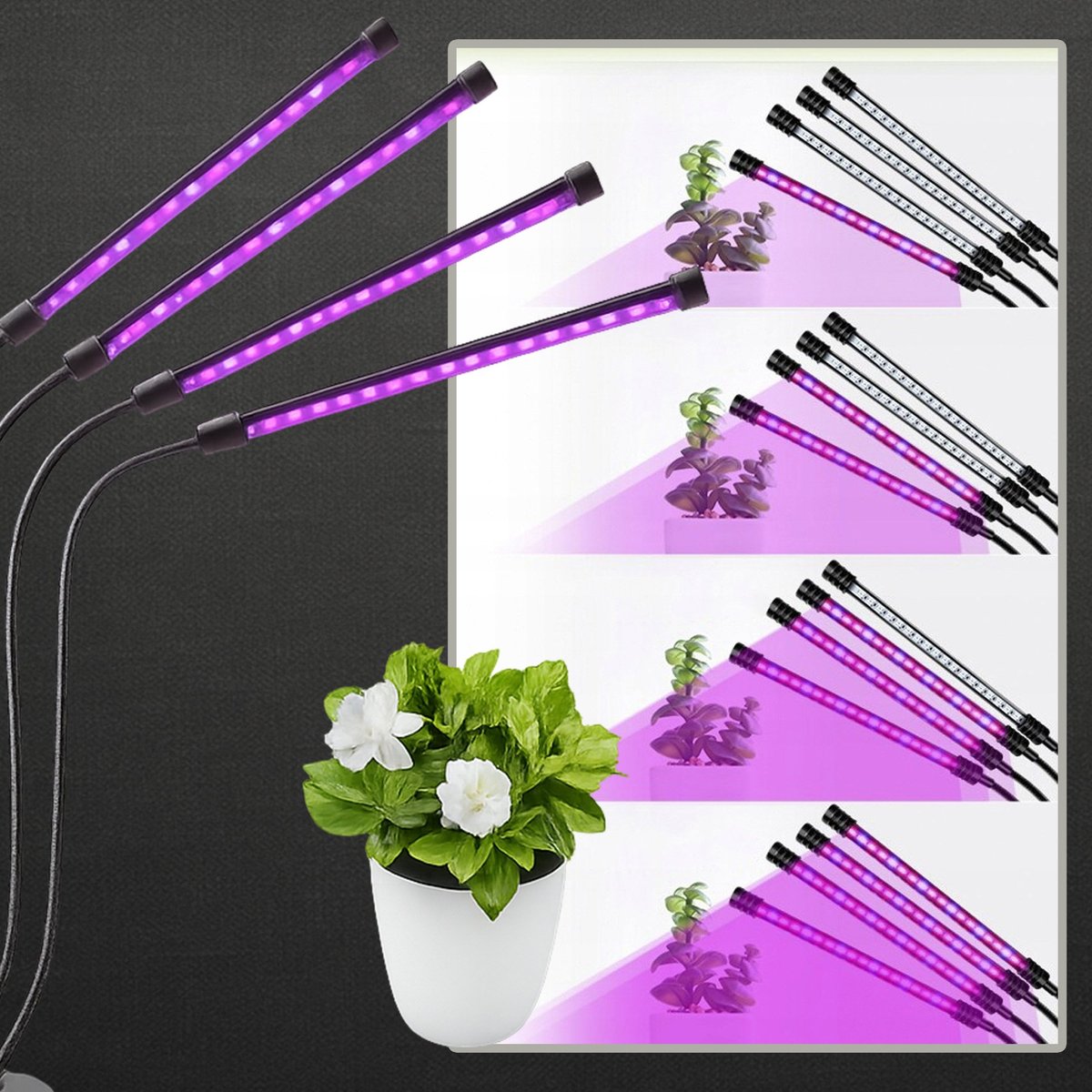 Lampa LED do doświetlania roślin – 4 ramiona na giętkich wysięgnikach z klipsem ??