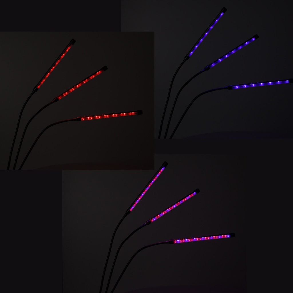 LAMPA LED DO UPRAWY ROŚLIN - Trójramienna lampa LED do roślin to praktyczne rozwiązanie dla osób chcących zapewnić swoim roślinom optymalne warunki do wzrostu w domu, szklarni czy ogrodzie. Diody LED w trzech barwach wspomagają wszystkie fazy wzrostu roślin, od kiełkowania po kwitnienie, co sprzyja zdrowemu rozwojowi liści, łodyg i kwiatów.