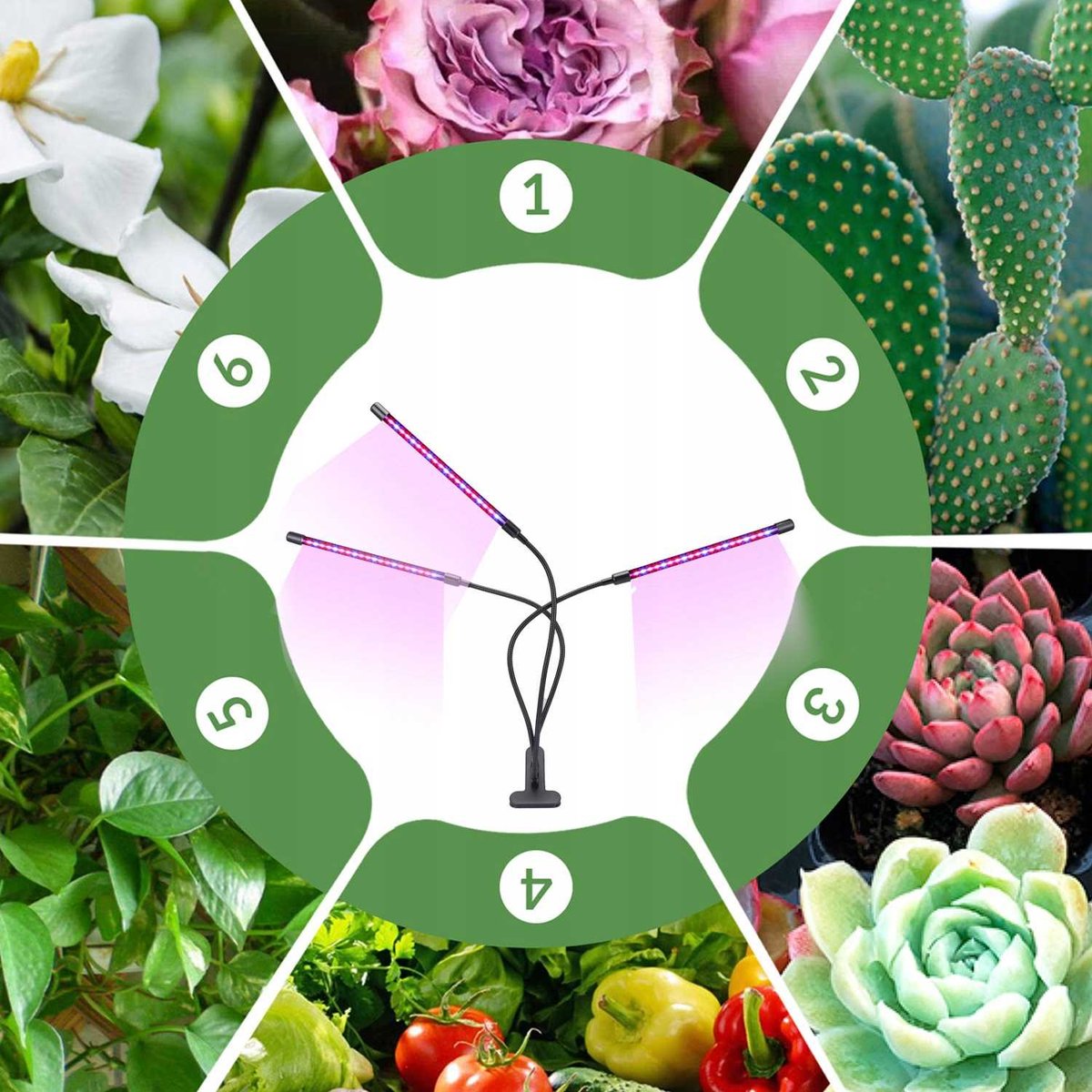 Lampa LED do roślin z dwoma głowicami pozwala dostosować siłę światła i wybrać jeden z 9 trybów, które mogą dawać moc od 20 do 100%. Warto również zwrócić uwagę na wysokość położenia głowicy z LEDami nad rośliną, aby nie doszło do jej spalenia.