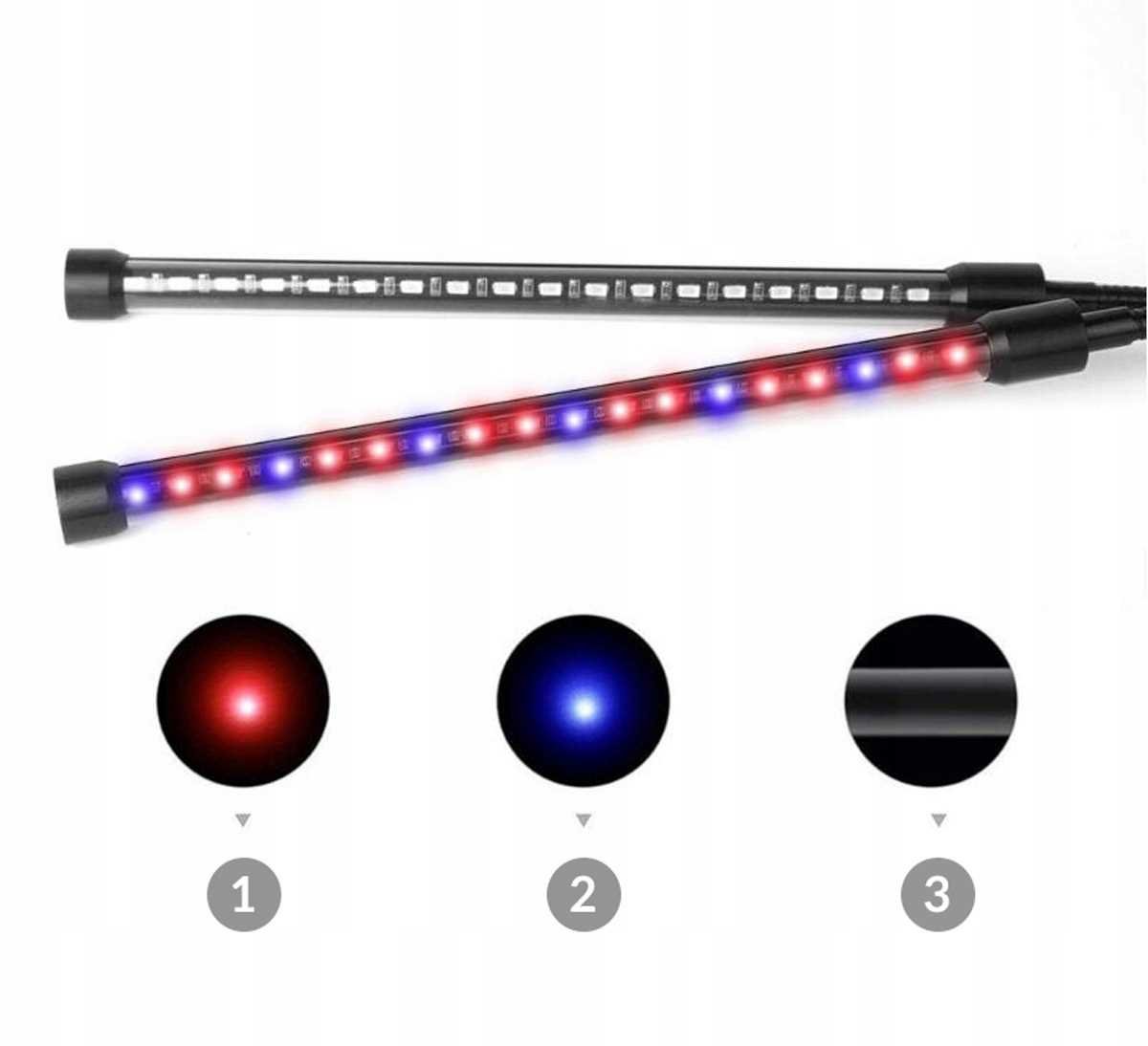 Każda z głowica ma po 12 LEDów czerwonych i 6 LEDów niebieskich. 3 tryby naświetlania pozwalają na dobranie odpowiedniego koloru światła i długości fali.