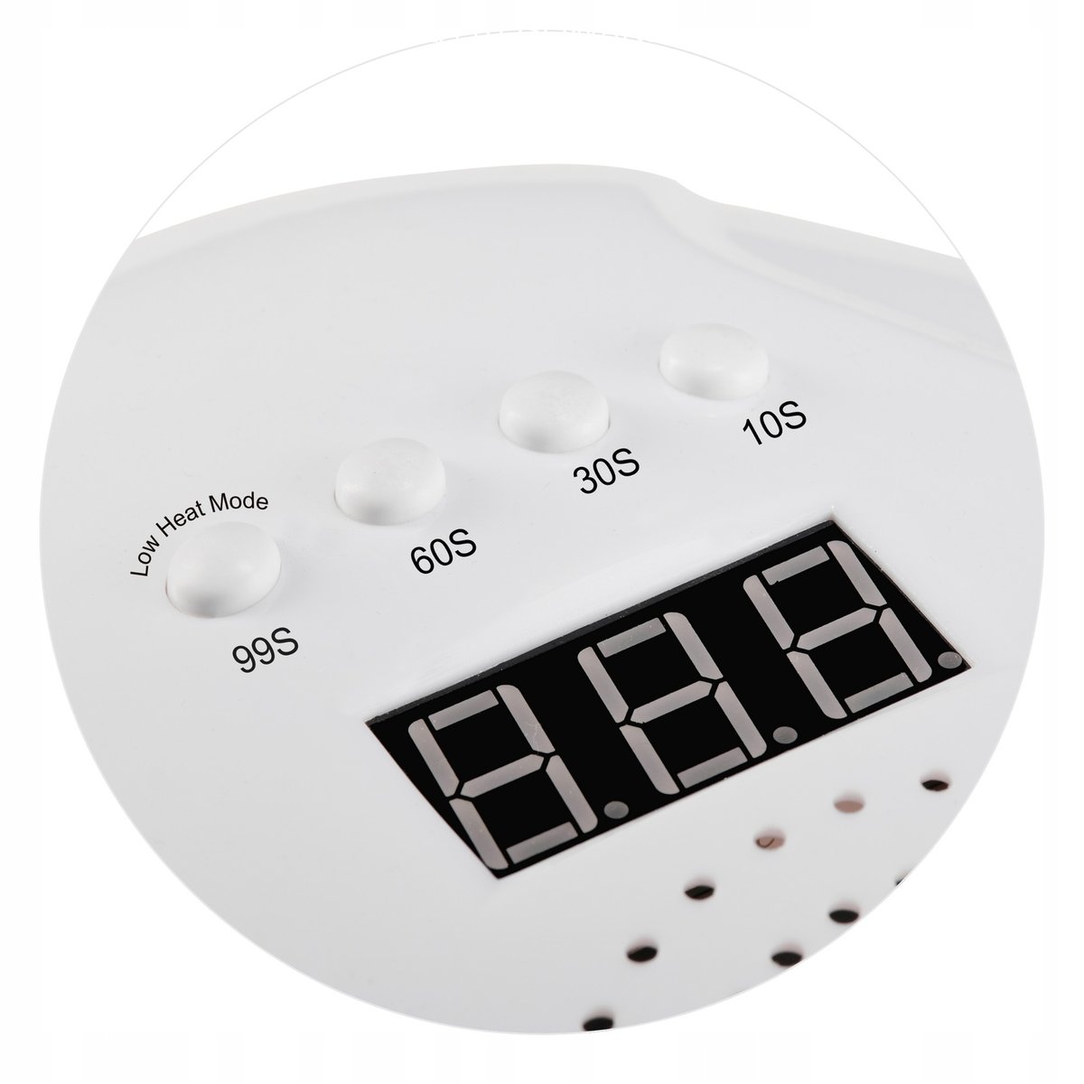 Oferuje regulowany timer z czterema trybami utwardzania (10s, 30s, 60s, 99s), co umożliwia precyzyjne dopasowanie czasu do rodzaju lakieru lub żelu. Wbudowany wyświetlacz ułatwia monitorowanie i kontrolowanie ustawień.