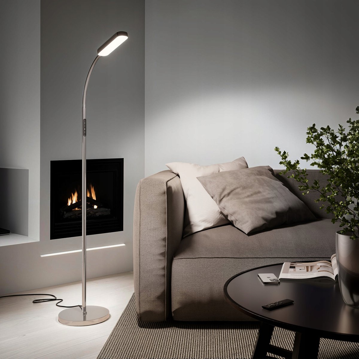 Nowoczesna lampa podłogowa jest wyposażona w elastyczną tzw. gęsią szyję, która umożliwia precyzyjne skierowanie światła. Ułatwia to stworzenie optymalnych warunków oświetleniowych w dowolnym miejscu. Niezależnie od tego, czy chcesz poczytać książkę na kanapie, czy stworzyć spokojną atmosferę na przytulny wieczór przed telewizorem - ta lampa podłogowa LED pozwala bez wysiłku dostosować ją do indywidualnych potrzeb.
