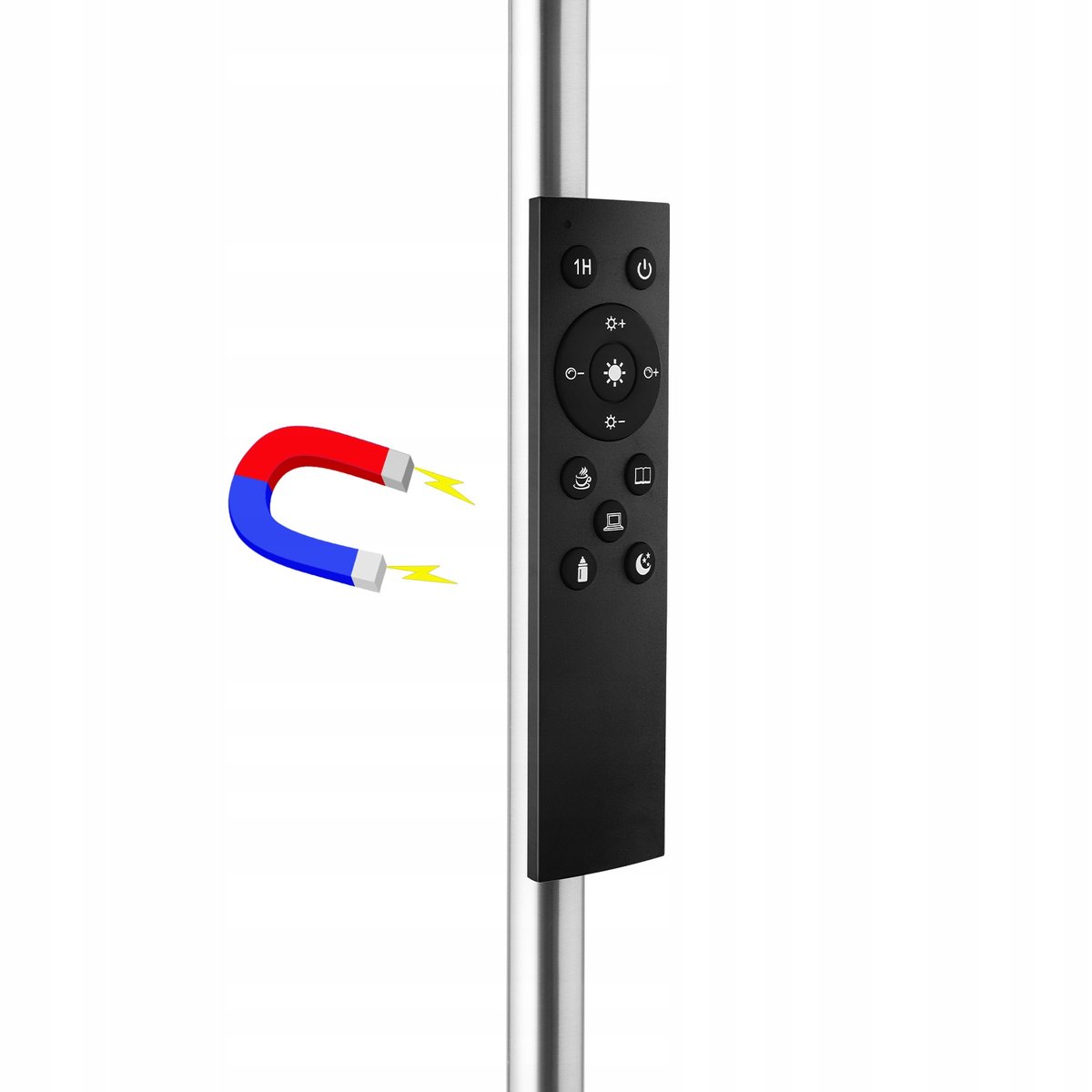 Dołączony magnetyczny pilot zdalnego sterowania sprawia, że obsługa jest jeszcze wygodniejsza, umożliwiając sterowanie lampą podłogową na odległość i po prostu przymocowanie jej do słupa lampy, gdy nie jest używana. Niezależnie od tego, czy siedzisz na kanapie, czy w fotelu - masz pełną kontrolę nad oświetleniem bez konieczności opuszczania ulubionego miejsca.