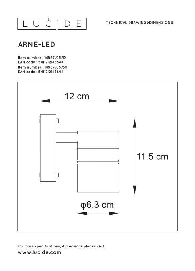 Lampa ZEWNĘTRZNA ŚCIENNA Lucide GU10 5W 2700K ARNE-LED 14867/05/30 zawiera źródło światła w zestawie: GU10 5W 350lm 2700K materiał zwisu/stelaża: stalkolor zwisu/stelaża: czarnyklosz: z ...