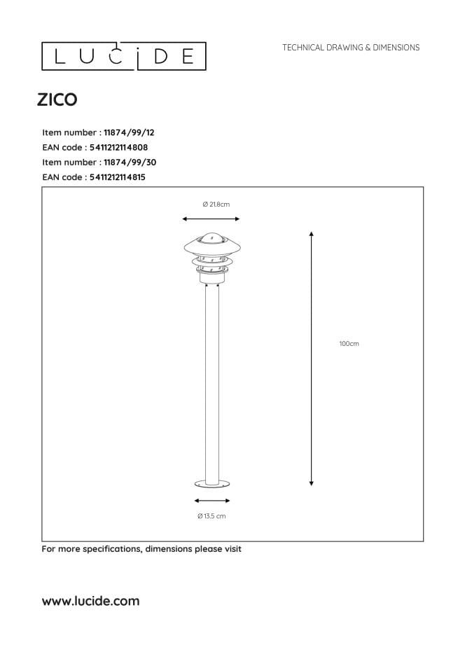 Lampa ZEWNĘTRZNA STOJĄCA Lucide E27 60W ZICO 11874/99/12 materiał zwisu/stelaża: aluminiumkolor zwisu/stelaża: srebrnyklosz: z kloszemmateriał klosza: szkłokolor abażura/klosza: transparentnymarka: