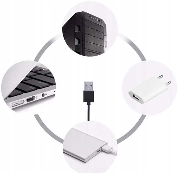 Lampka jest sprzedawana wraz z pilotem do sterowania oświetleniem. Lampka zasilana kablem USB (dołączony w zestawie) Lampkę można podłączyć do gniazdka USB komputera lub zwykle do kontaktu