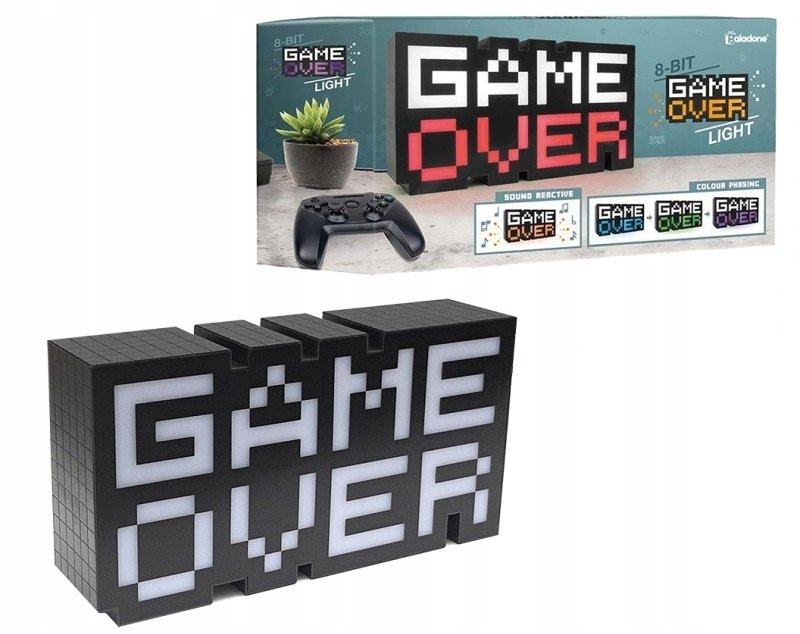 Lampka GAME OVER RETRO - duża lampa LED zmieniająca kolory i świecąca do rytmu muzyki (jedna z opcji)✔ Lampka GAME OVER przeniesie Cię w klimat gier RETRO - 8 bit. Ten styl pamięta lata 80's i ...