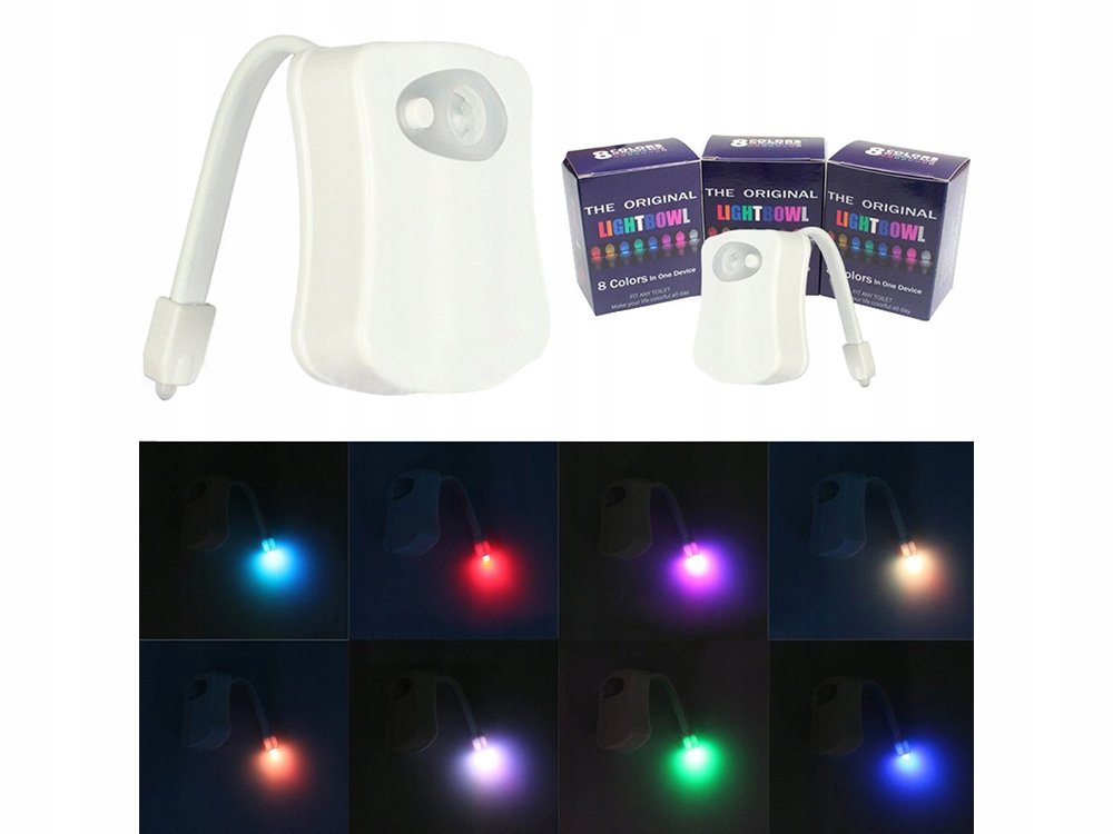 Lampka podświetlająca do muszli klozetowej to praktyczny gadżet. Podświetla toaletę, dzięki czemu nie musimy zapalać w nocy jasnego, często rażącego światła w łazience. Posiada czujnik ruchu, który reaguje wtedy gdy osoba znajduje się w pobliżu. Lampka jest wydajna, emituje jasne kolorowe światło. Za pomocą przycisku lampkę można całkowicie wyłączyć.