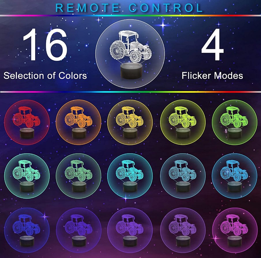 ?? Lampka Nocna Traktor 3D ?? To doskonały wybór na dekorację pokoju fana rolnictwa. Może służyć jako lampa stołowa, prezent na urodziny, Święta, upominek imprezowy i dekoracja do pokoju. Jej ...